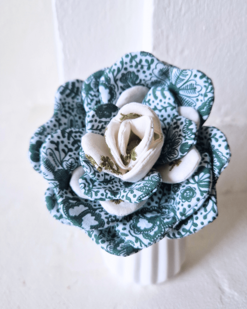 Ce patron nécessite un niveau intermédiaire en couture. Il n’y a aucun point technique particulier (la rose est donc un peu plus simple à coudre que la Jonquille déjà proposée). Mais bien sûr, la couture de tous ces petits pétales demande un minimum de minutie.