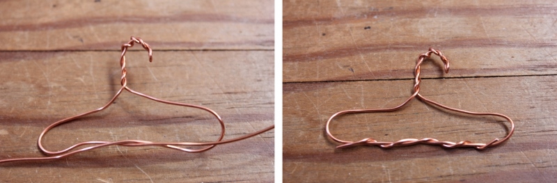 2- Former le crochet du cintre avec le fil métallique enroulé ainsi obtenu.