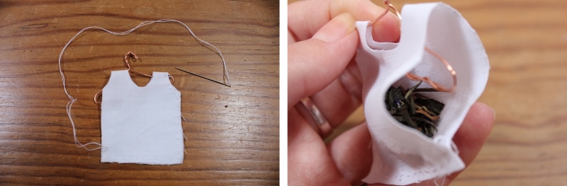 4- Enrouler l’une sur l’autre les deux extrémités du fil métallique et couper ce qui dépasserait. Faire autant de cintres que de sachets désirés.
