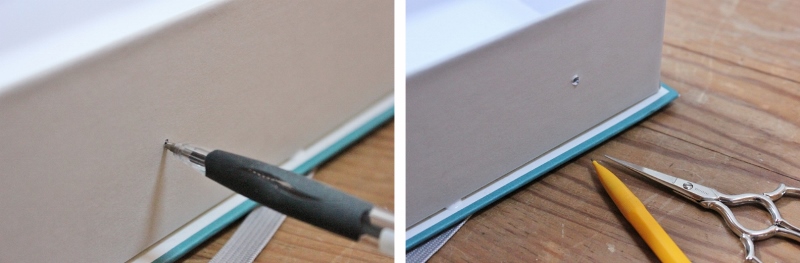 16- Percer les quatre trous à l’aide d’une pointe ou d’un ciseau de couture.