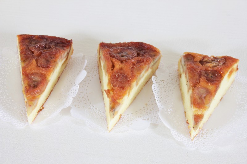 Gâteau renversé faisselle et bananes caramélisées