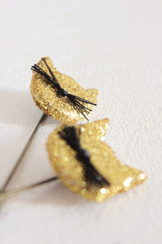 Chat, moustache, paillettes : broche super chouette !
