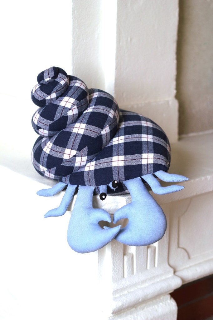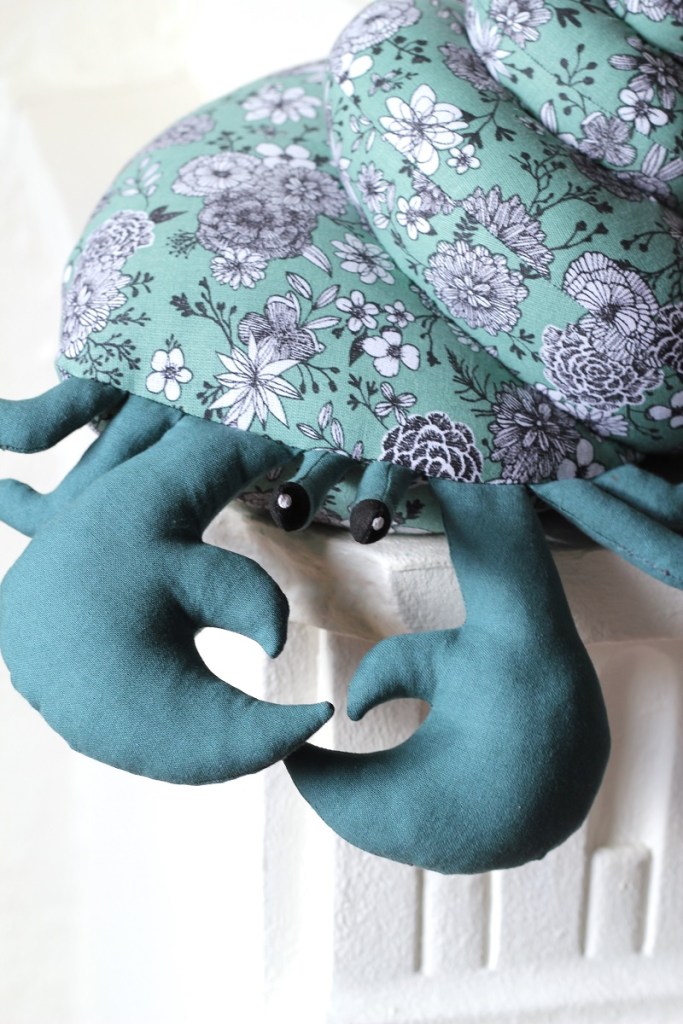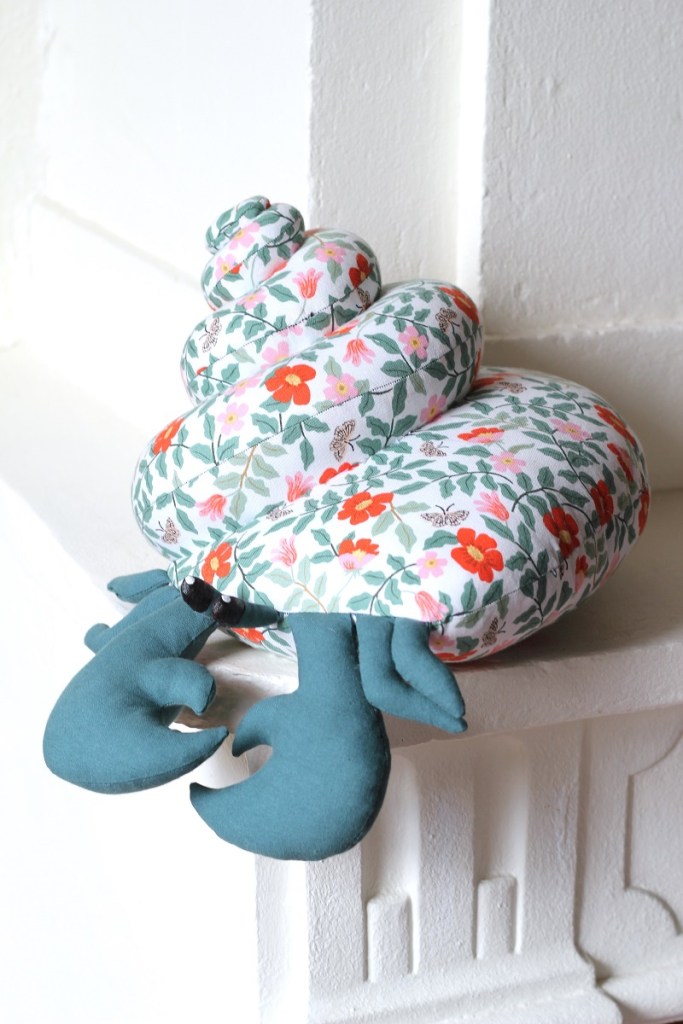 Je suis très heureuse de vous présenter le dernier patron Les Enchantées ! Le Bernard l’Hermite, un patron pour les amoureux de la mer et des doudous originaux. J’ai eu très envie de coudre ce petit crustacé en ramassant des coquillages avec mes enfants en bretagne. La conception de la coquille m’a valut plusieurs nuit blanches, et j’ai adoré imaginer un montage qui soit à la fois visuellement satisfaisant mais aussi simple que possible. Néanmoins le ou la première qui me dit que « CE SERAIT BIEN QUE LES PATTES PINCES ET YEUX PUISSENT SE RETRACTER », je lui fais manger de la ouate. Non mais…